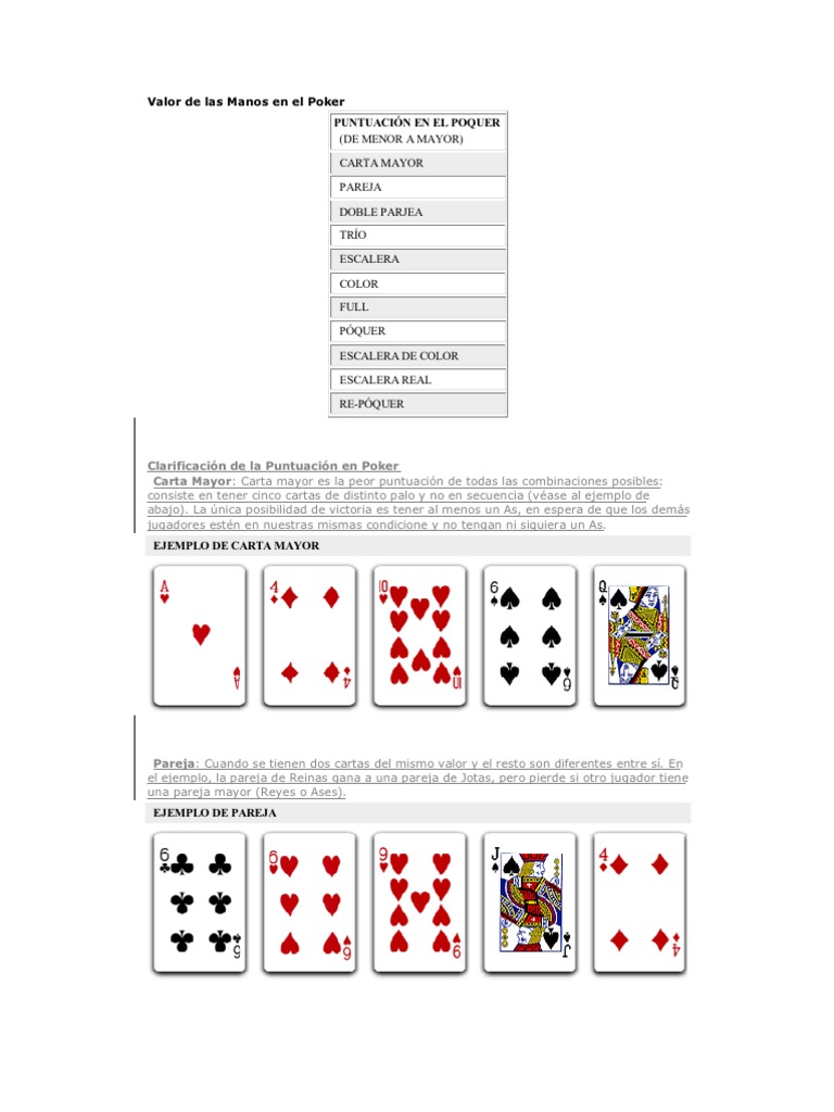 Poker Combinaciones En Espanol Juegos De Cartas Jugadas De Poker Manos De Poker