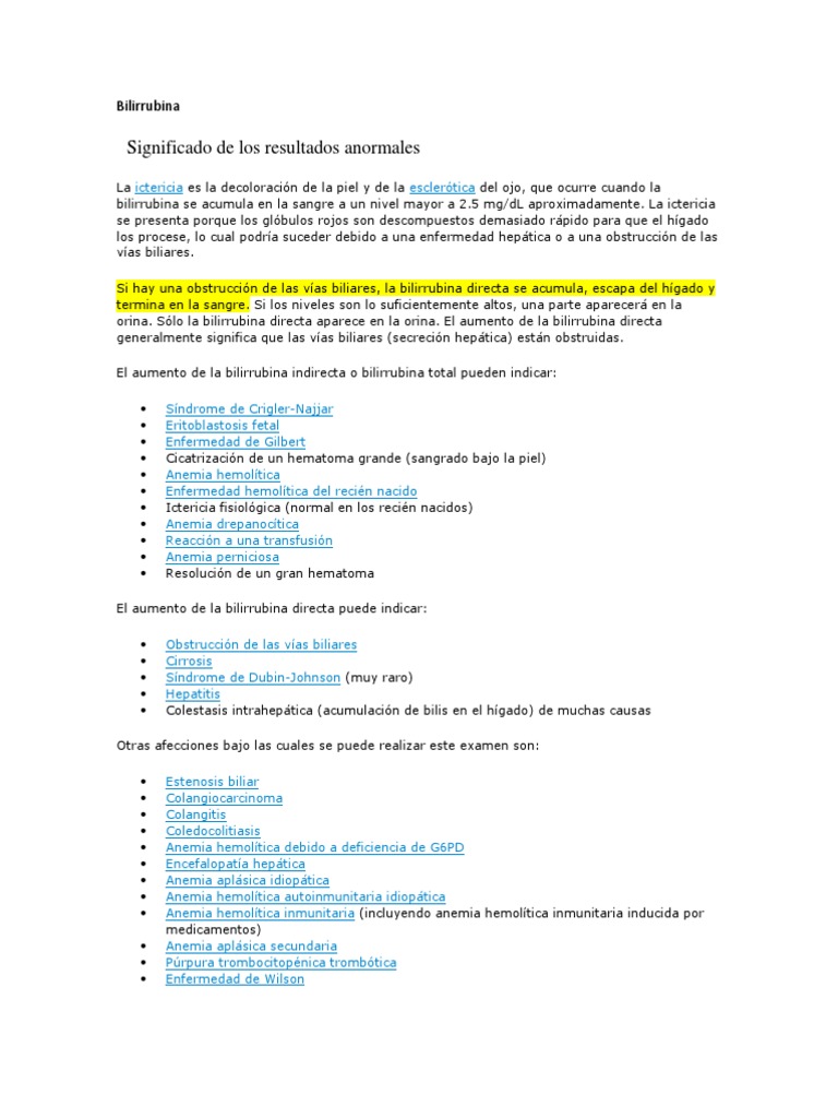 Significa que el cuerpo está eliminando demasiados glóbulos rojos. La bilirrubina directa o conjugada que no esta unida a otras proteínas que circula libremente por el torrente sanguíneo hasta alcanzar el hígado. Síndrome de Gilbert producido por una alteración genética que no deja al hígado eliminar.